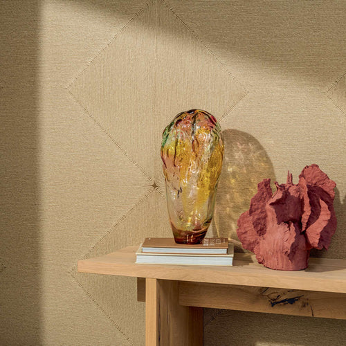 Het Cocon behang van Élitis combineert verfijning en textuur, geïnspireerd op een subtiel met touw ingelegd patroon. De reliëfstructuur en zachte tinten creëren sfeer en warmte.