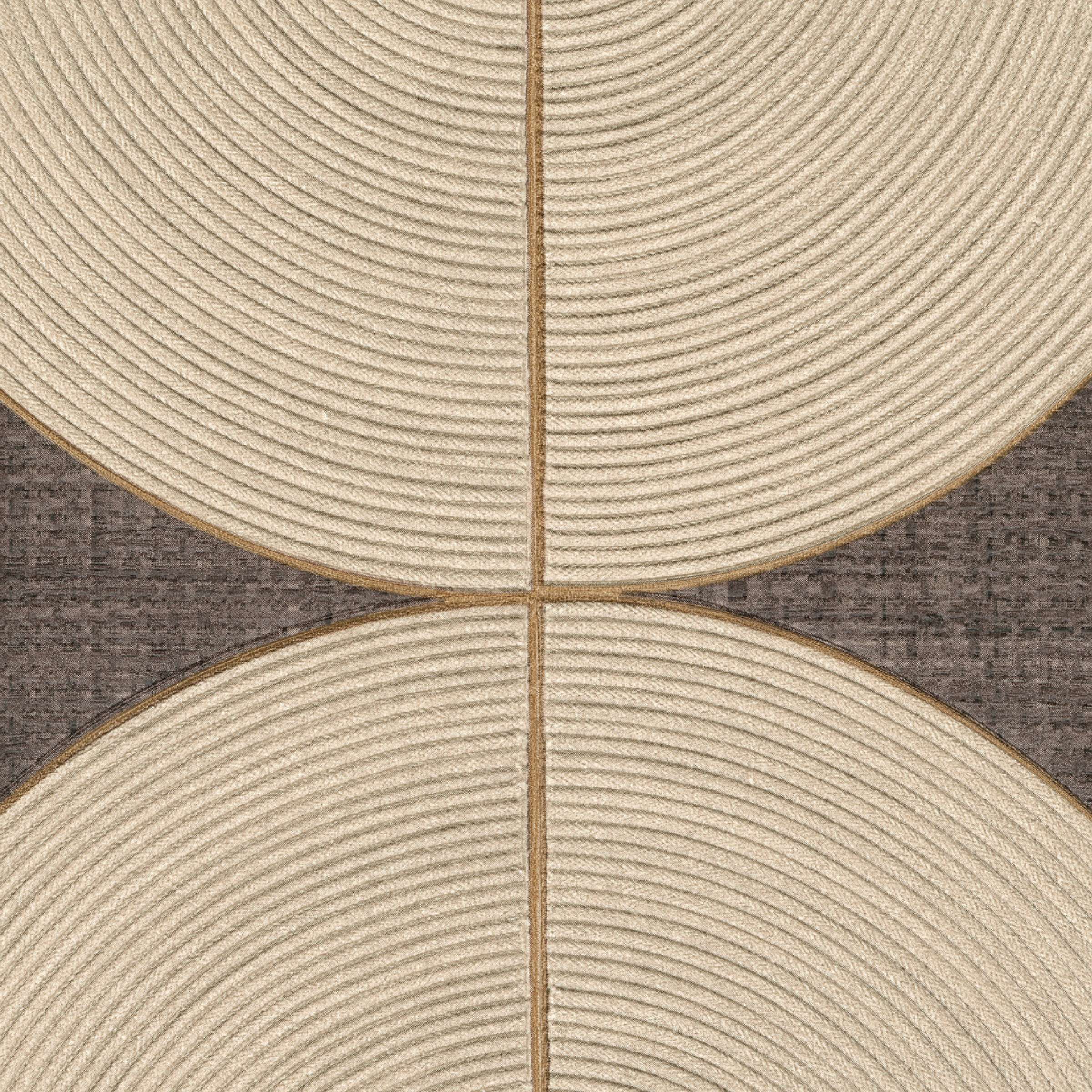Het Courbes behang van Élitis combineert verfijning en textuur, geïnspireerd op met touw ingelegd patroon. De reliëfstructuur en zachte tinten creëren een organisch patroon.