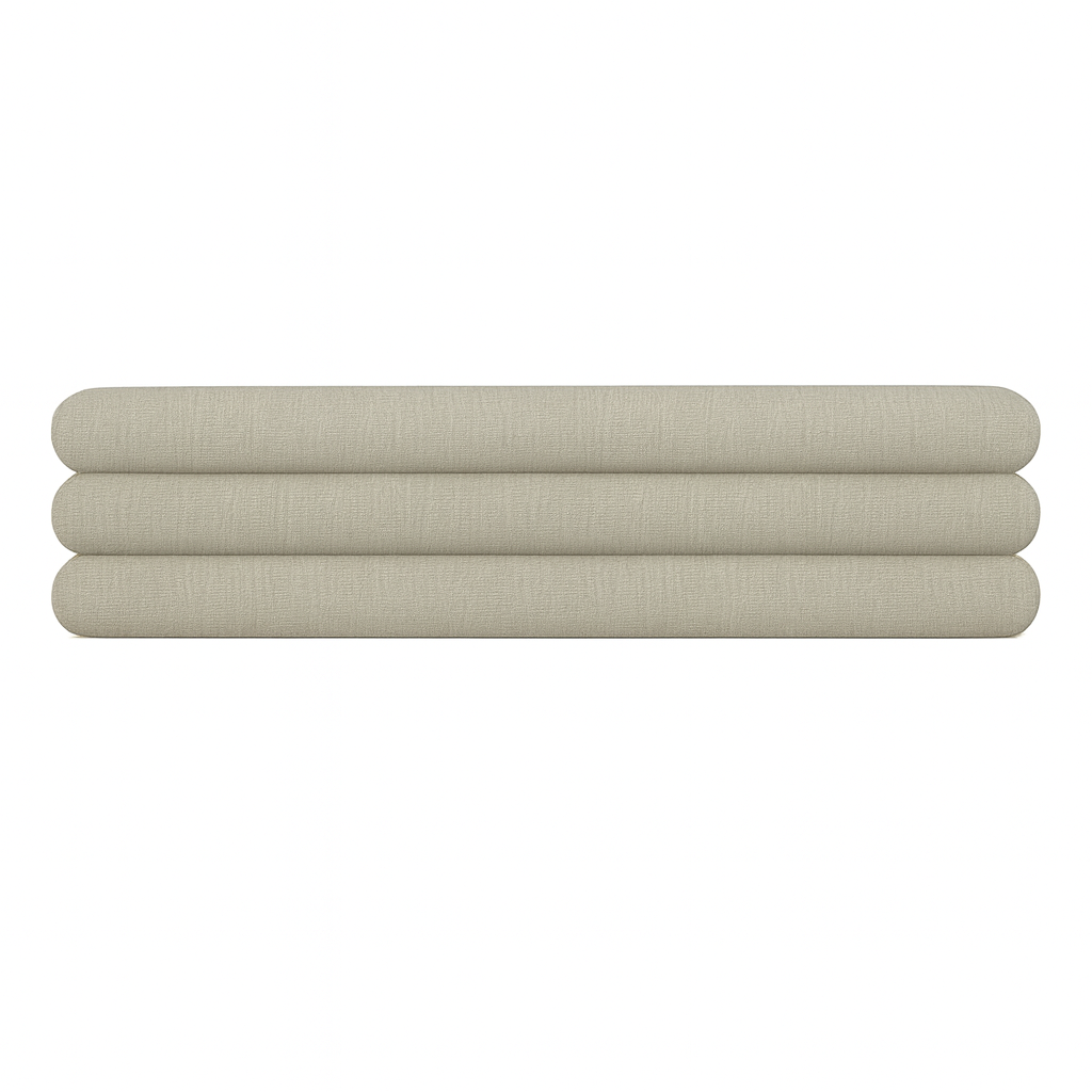 Dit unieke hoofdbord is speciaal ontworpen voor de wat kleinere slaapkamers. Het hoofdbord wordt aan de muur gemonteerd boven het bed. Bij het hoofdbord wordt er gebruik gemaakt van horizontale banen wat zorgt voor een ruimtelijk effect. De hoogte van het hoofdbord is 60cm, bestaande uit 3 banen van 20cm hoog.