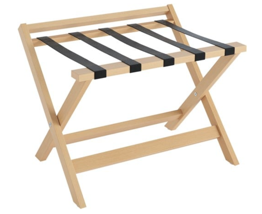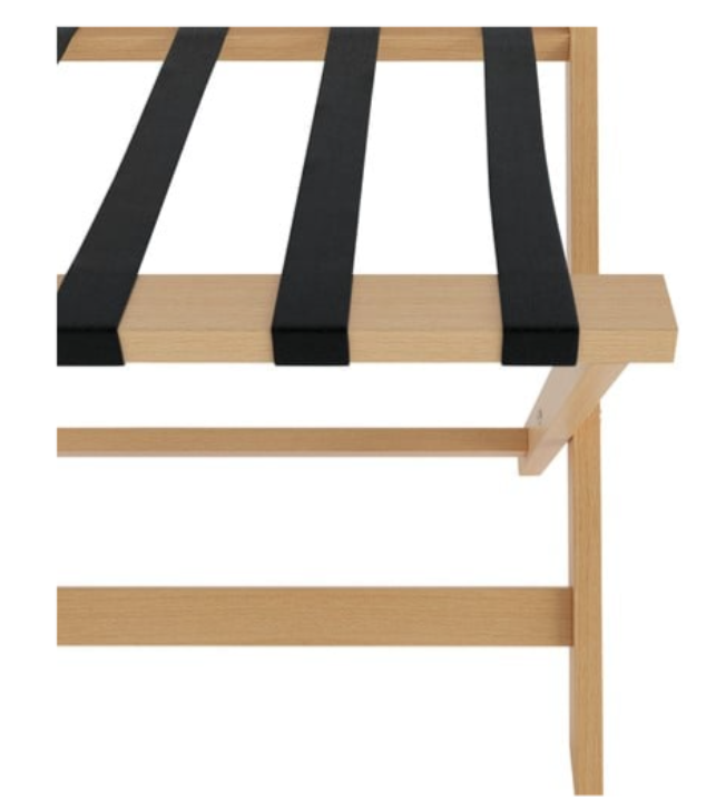 Maak kennis met ons zwarte kofferrek met vijf sterke riemen, een rugsteun en een stijlvol houten frame – perfect voor de logeerkamer, hotelkamer of hal. Dit moderne bagagerek is voorzien van 5 zwarte riemen met hoge weerstand die uw koffer op een luxe manier hoger bewaren. Hij is opvouwbaar voor een optimale ruimtebesparing. Daarnaast is het niet alleen handig voor koffers, maar ook als tijdelijke houder voor tassen, kleding of linnengoed.