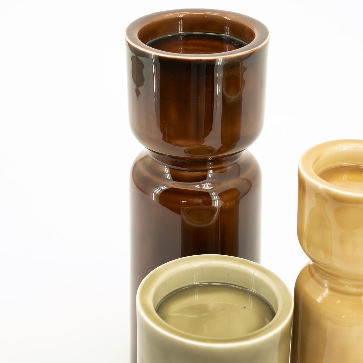De Roan kandelaren voegen een subtiel statement toe aan je interieur. De set bestaat uit drie keramische kandelaars in warme, harmonieuze kleuren die moeiteloos sfeer brengen. De verschillende hoogtes geven een dynamisch effect, waardoor de set mooi uitkomt als decoratief accent op een dressoir, bijzettafel of gedekte tafel.