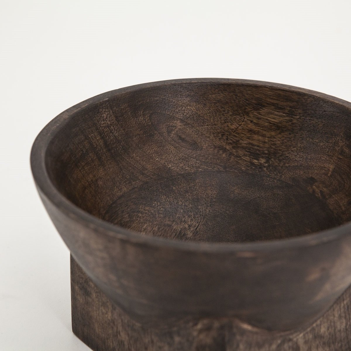 De Bora schaal valt op door haar natuurlijke vorm en warme, donkere houttint. De combinatie tussen rond en recht geeft deze schaal een rustige, maar bijzondere uitstraling. Mooi op zichzelf, maar ook leuk in combinatie met de Medium variant.