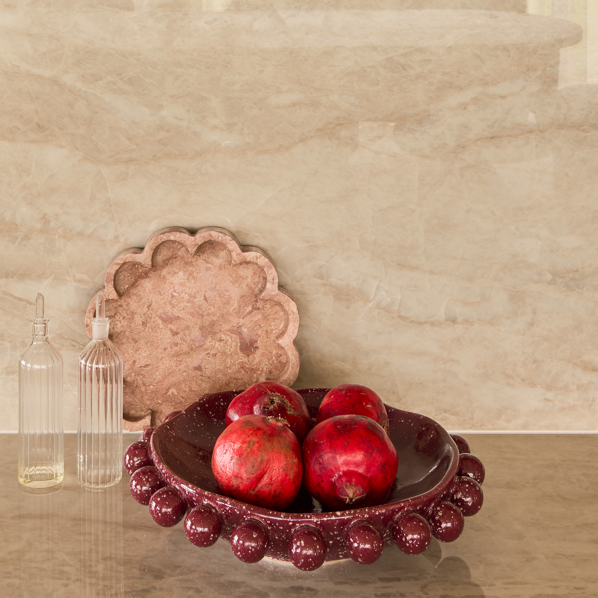 De Viro schaal trekt de aandacht door haar unieke vorm. De combinatie van het speelse effect met de bollen en prachtige kleur is de Viro schaal niet alleen decoratief in je woning maar ook functioneel.