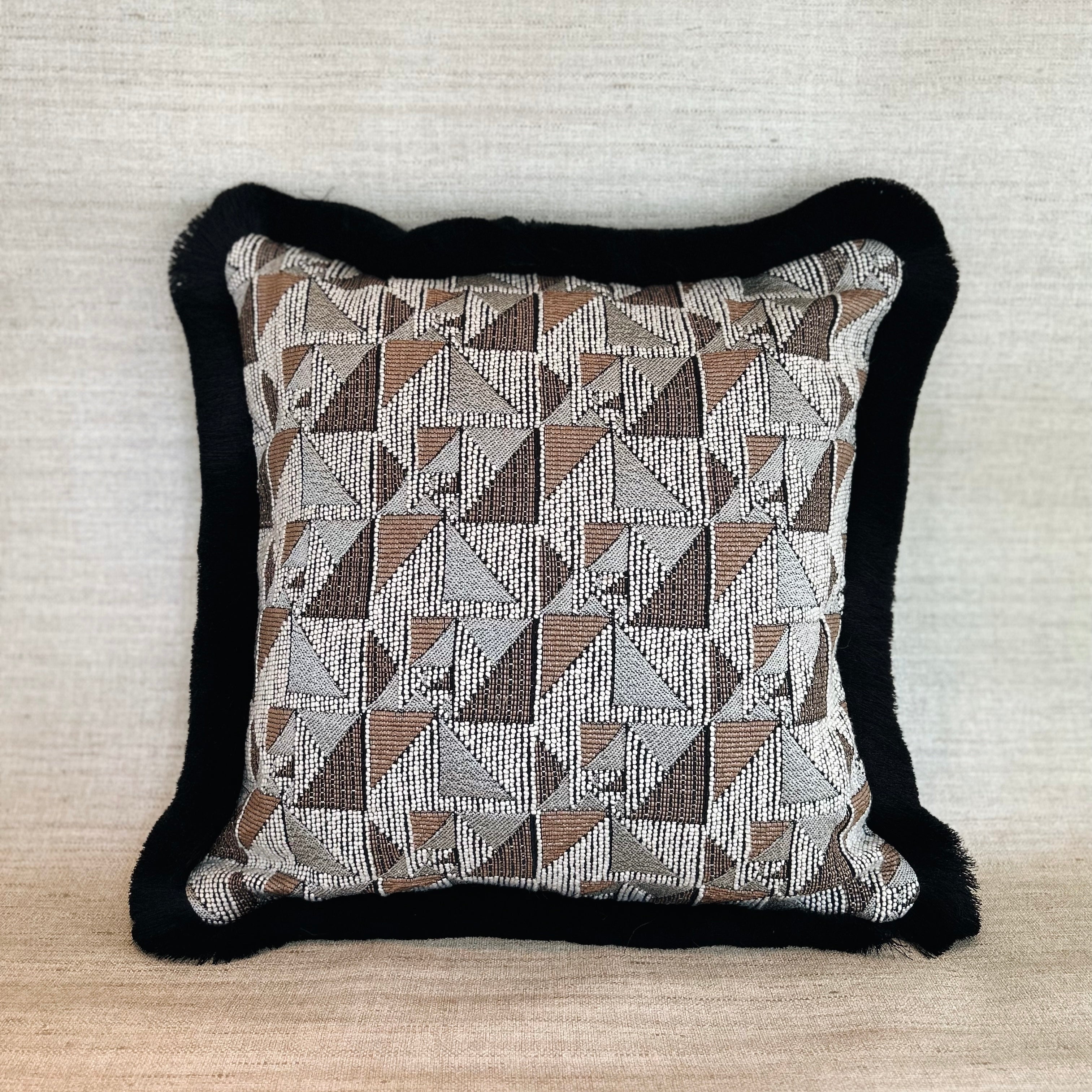 Dit mooie sierkussen is een echte eyecatcher op je bank of bed! De stof aan de voorzijde bestaat uit een combinatie van polyester en katoen maar lijkt gemaakt te zijn van kralen, heel bijzonder! Dit model heeft een mooi zwart glanzend passement, er is ook een kleine. Uitvoering zonder. Deze zijn prachtig met elkaar te combineren! De achterkant is gemaakt van een zachte linnenlook stof.