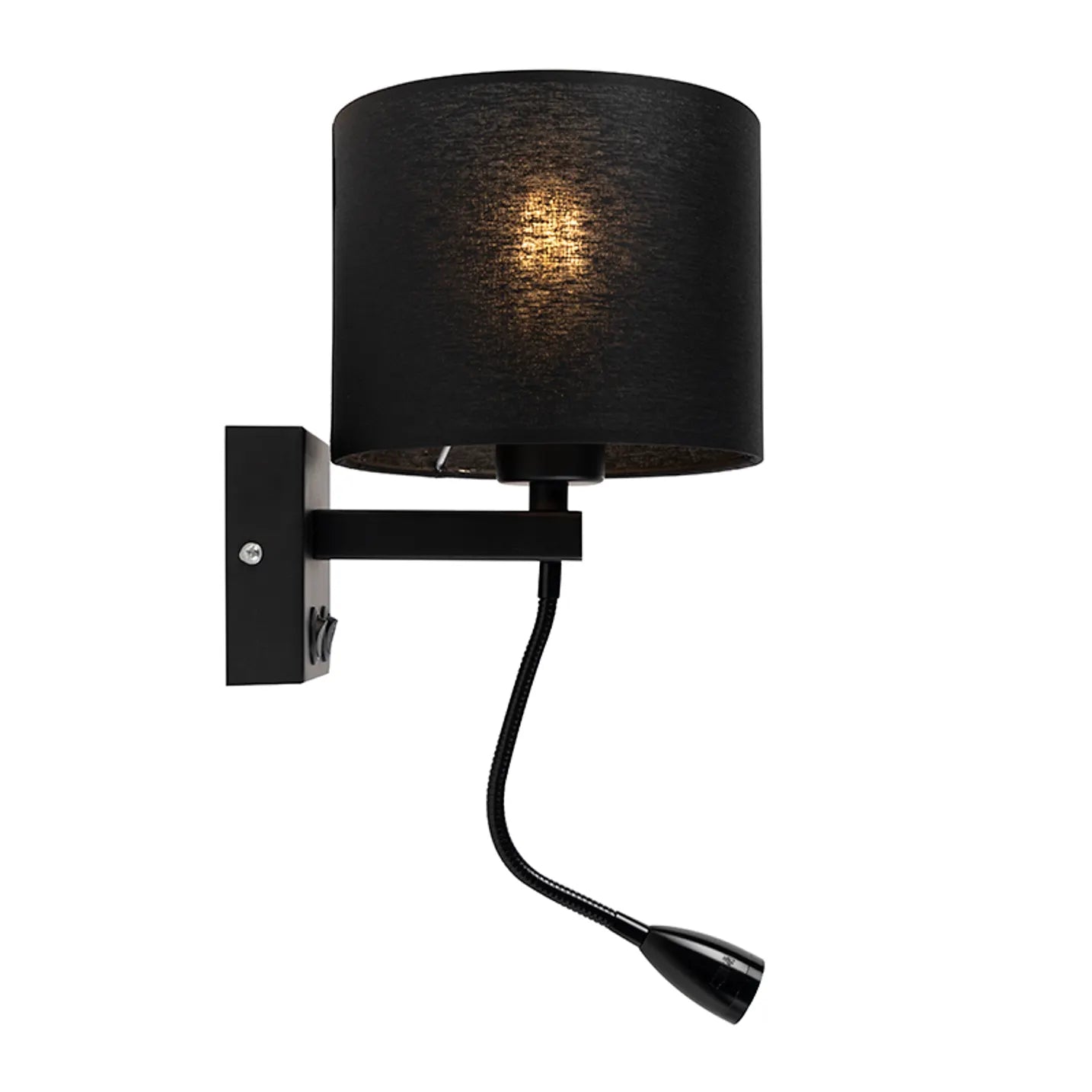 Breng de sfeer van een luxe hotel naar huis met deze moderne zwarte wandlamp. Het strakke design en de geïntegreerde LED-leeslamp geven een stijlvolle, praktische touch aan je interieur. De afneembare lampenkap straalt met de zwarte armatuur als echte eyecatcher. Dankzij de apart schakelbare lamp en leeslamp geniet je van precies de juiste verlichting. Voor de standaardlamp (E27, max. 60W) kun je eenvoudig terecht in onze webshop – perfect voor in je slaapkamer.